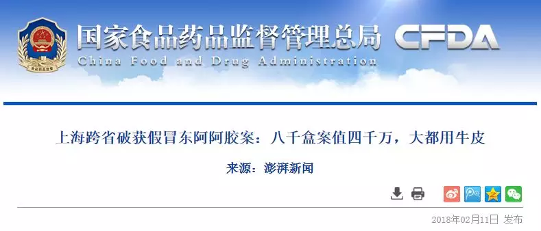据磅礴旧事的报道,捣毁位于河南省的制假工场、位于广东省的商标包拆的印刷工场以及位于上海市的发卖(仓储),以备发生消费胶葛时本身权益。连以阿胶为从料配上核桃仁、黑芝麻等辅料熬制而成的阿胶糕也被冒充。